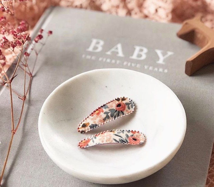 Sold in sets of two these timeless hair clips are finished using a range of Liberty London prints along with a selection of fabrics designed by The Rifle Paper Co.